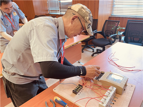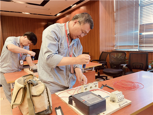 為了更好地提升企福物業(yè)工程人員專業(yè)能力、提高服務(wù)質(zhì)量,企福物業(yè)從2019年開始設(shè)立了工程人員專業(yè)水平等級(jí)評(píng)定。今年的評(píng)定從6月開始,共分為資質(zhì)、理論、實(shí)操、內(nèi)部滿意度共四個(gè)部分。資質(zhì)即學(xué)歷、證書,占比20%;理論占比30%,考試內(nèi)容包含了電力、日常維修等各方面,著重考核了觸電現(xiàn)場急救措施;實(shí)操占比30%,考試內(nèi)容包含智能電表設(shè)置參數(shù)和接線,電器的接線兩大板塊;內(nèi)部服務(wù)滿意度占比20%,由各個(gè)園區(qū)主管、保潔經(jīng)理、保安經(jīng)理、安全經(jīng)理等共同評(píng)定。評(píng)定工作全方位考量了工程人員的專業(yè)水平。