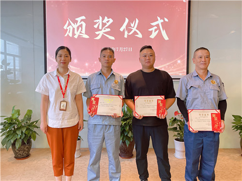 為表彰在2023年企福物業(yè)工程人員評(píng)定及松江經(jīng)濟(jì)技術(shù)開發(fā)區(qū)物業(yè)行業(yè)(電工)職工勞動(dòng)和技能競(jìng)賽中獲得優(yōu)異成績(jī)的員工,7月27日,企福物業(yè)特舉辦頒獎(jiǎng)典禮。企福天地黨支部書記、企福集團(tuán)副總經(jīng)理?xiàng)罨哿殖鱿楂@獎(jiǎng)人員頒獎(jiǎng)。