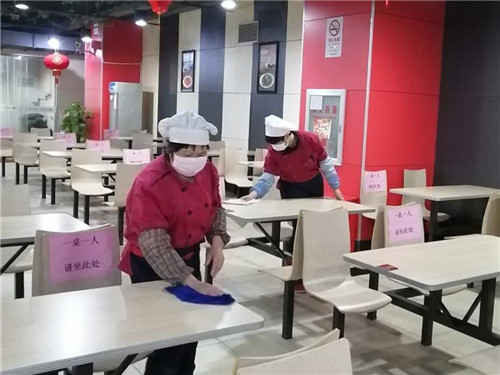 曾經(jīng)我們津津樂道的是企德天地食堂牙刷刷排水道、灶臺干凈的可以當鏡子照。日常環(huán)境衛(wèi)生管理已經(jīng)做到極致,疫情期間就更為嚴格了。在負責人陸阿姨的帶領下,食堂每天要進行兩次全面消毒、使用食品級消毒液、地面進行漂洗、所有需要使用的餐盤進行多次消毒……同時,所有食堂工作人員實行上下班測量體溫制度,形成規(guī)范化防疫管理。