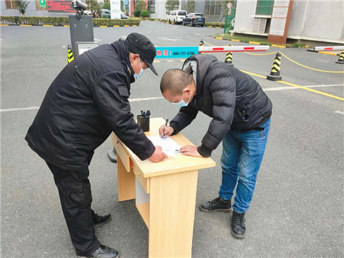 近期室外溫度低、一度達(dá)到零下,氣候多變、陣雨不斷,企福物業(yè)的保安們頂著嚴(yán)寒、冒著雨,照常來到戶外,對園區(qū)進(jìn)出人員進(jìn)行體溫測量、登記等工作,沒有一絲松懈。