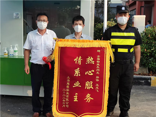 “朱主管,疫情封控期間多虧有你和你們物業(yè)團(tuán)隊(duì)幫我們發(fā)貨,不然我們真的不知道要怎么辦了!”6月27日上午,上海百豐服飾輔料有限公司總經(jīng)理戚仁豐趕到園區(qū)物業(yè)辦公室,為朱閩光及其團(tuán)隊(duì)送上錦旗?!?月14日,我們有一批貨急著要發(fā),聯(lián)系好了物流,但是我們工廠里沒有員工駐守,實(shí)在沒法發(fā)貨。朱主管了解情況后,讓現(xiàn)場(chǎng)保安人員幫我們搬貨。當(dāng)天晚上,園區(qū)保安孫偉、王龍飛(有鏟車操作證)就開著鏟車幫我們發(fā)貨30立方米?!?/span>